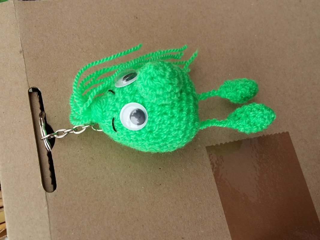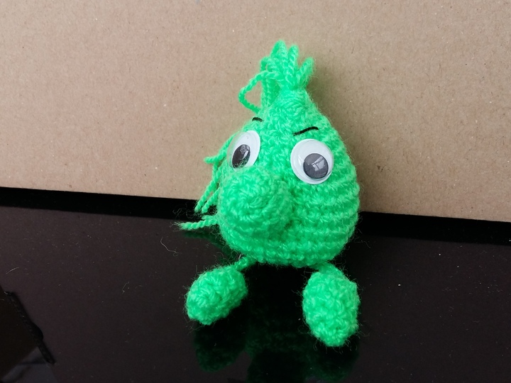 Wackelaugen bei Bedarf, die Augen können auch gestickt werden
