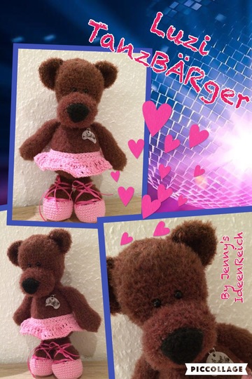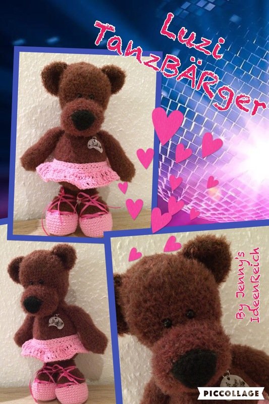 Ihr könnt hier die komplett ausformulierte Häkelanleitung zu Lutzi dem Tanzbären erwerben. Sie ist 13 Seiten lang und besteht aus Texten und Bildern zu allen Einzelteilen.