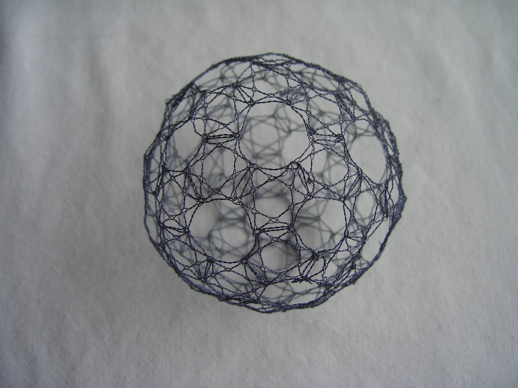 Anleitung für eine aus Draht geklöppelte Kugel. Sie ist in einem Stück mit durchlaufenden Fäden gearbeitet.