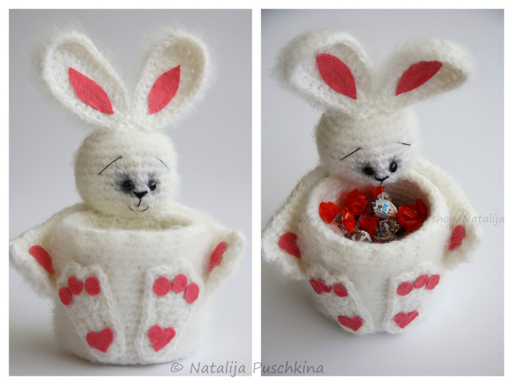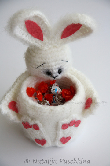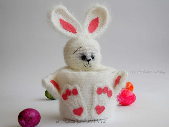 Verkauf der von Dir hergestellten Körbchen ist möglich: Du darfst Osterkörbchen, die Du mithilfe meiner Anleitung zum Häkeln gefertigt hast, in beliebiger Stückzahl gewerblich verkaufen. Bitte den Hinweis: „Angefertigt nach dem E-Book von Natalija Puschkina https://www.crazypatterns.net/de/store/Natalija“ dazusetzen.