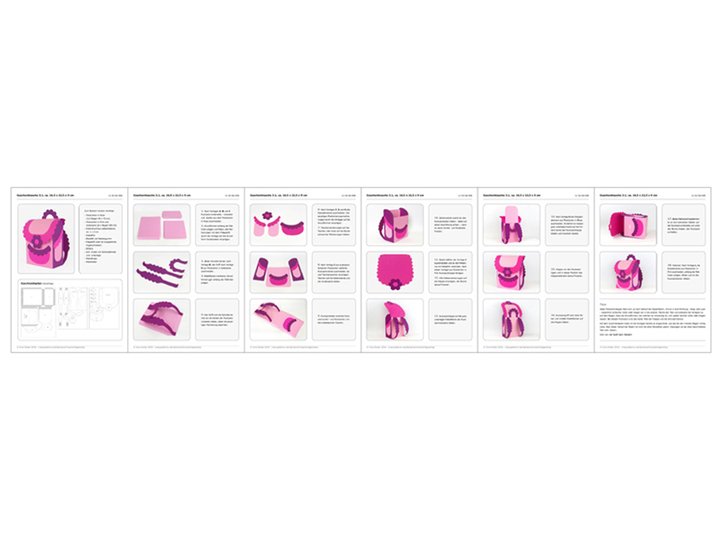 Die seitlichen Taschen und die Vordertasche sind nur als Dekoration gedacht, wenn sie aber nur an den Rändern angeklebt werden, dann können sie auch zum Einstecken einer Karte, eines Geldgeschenks o. Ä. verwendet werden.