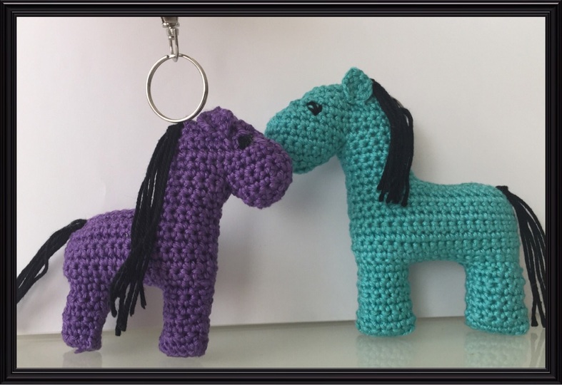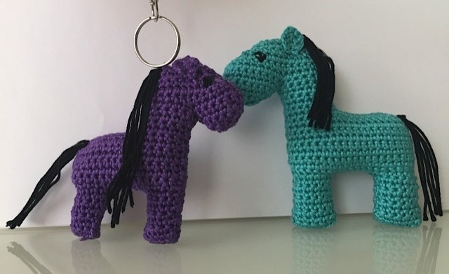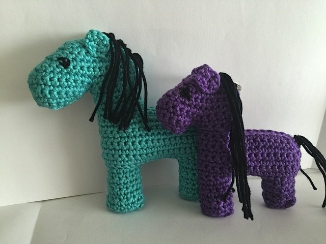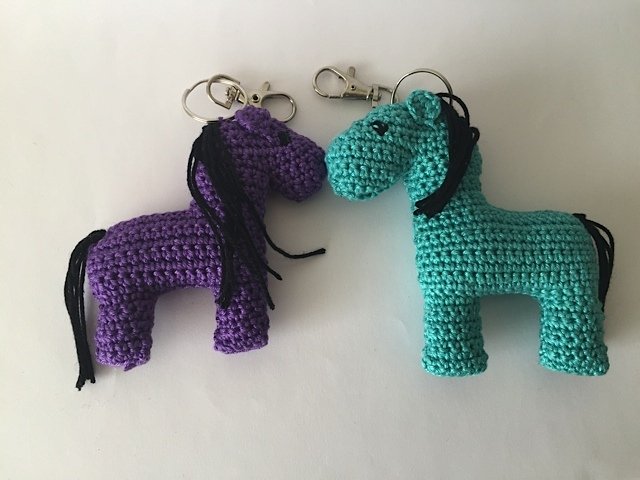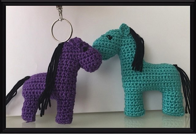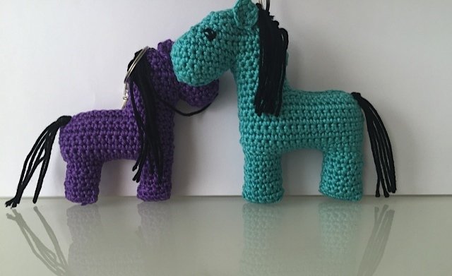 Die Perde habe ich NICHT typisch in Runden gehäkelt, sondern in Reihen. Wie man das macht habe ich auch ausführlich beschrieben. Sie bestehen aus 3 verschiedenen Teile und die Vorder-und Rückseite werden zusammen genäht.