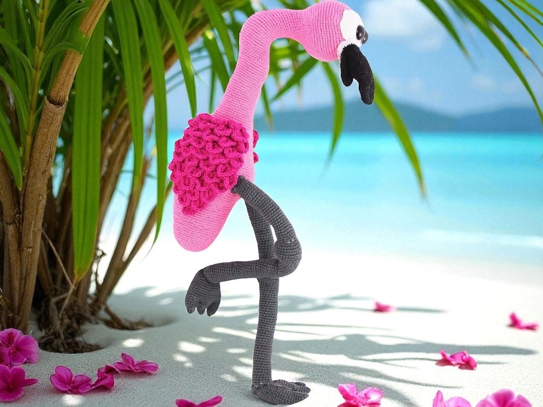 Flamingos sind zauberhafte, farbenfrohe Tiere. In rot, rosa und kräftigem pink, sind sie eine wahre Augenweide. Ich habe für Euch einen großen Flamingo gezaubert, mit flauschigem Gefieder und wünsche Euch viel Spaß beim Nachhäkeln.