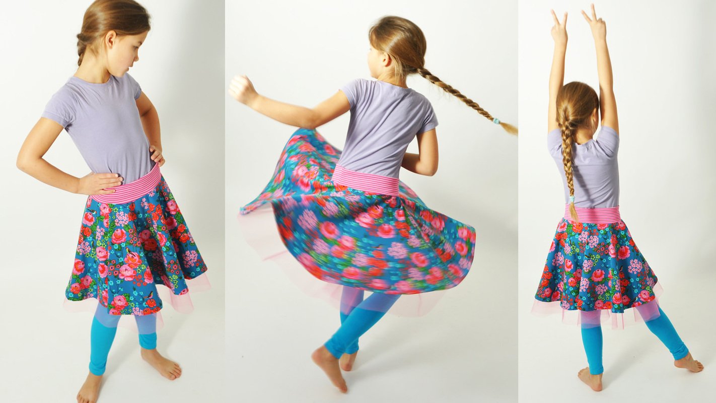 Durch die zahlreichen Gestaltungsmöglichkeiten bietet dieser Basicrock euch alles, was das Mädchenherz begehrt: wie wäre es mit einer Schleife am Bund, einer Verzierung mit Webband, Zackenlitzen, Knöpfen oder, oder, oder…?