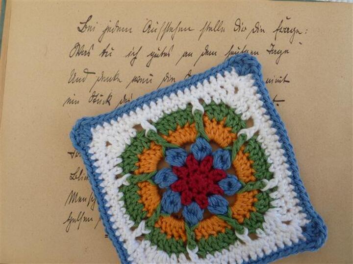Sie erhalten eine umfangreiche 10-seitige Anleitung zu einem von mir entworfenem Granny Square in 3 verschiedenen Farbkombinationen.