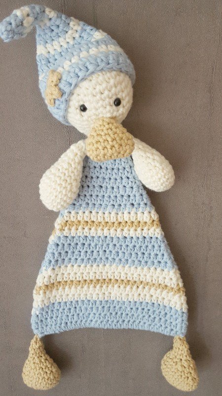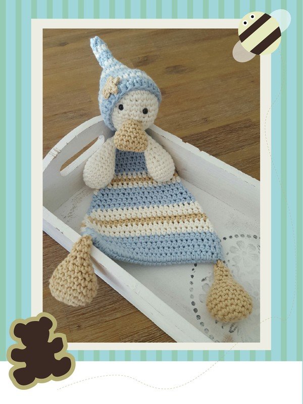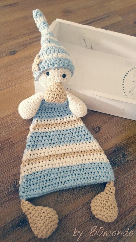 Gehäkelt wird das Tuch aus weichem Baumwollgarn, so ist es waschbar und für die Bedürfnisse unserer kleinen Lieblinge bestens geeignet.