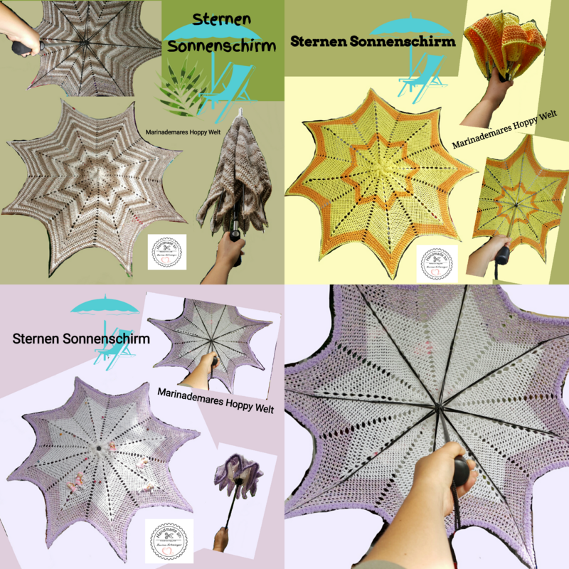4 Foto, auf den Fotos Bild getippter Text und Handschriftliche Häkelschrift ( Kurzbeschreibung).