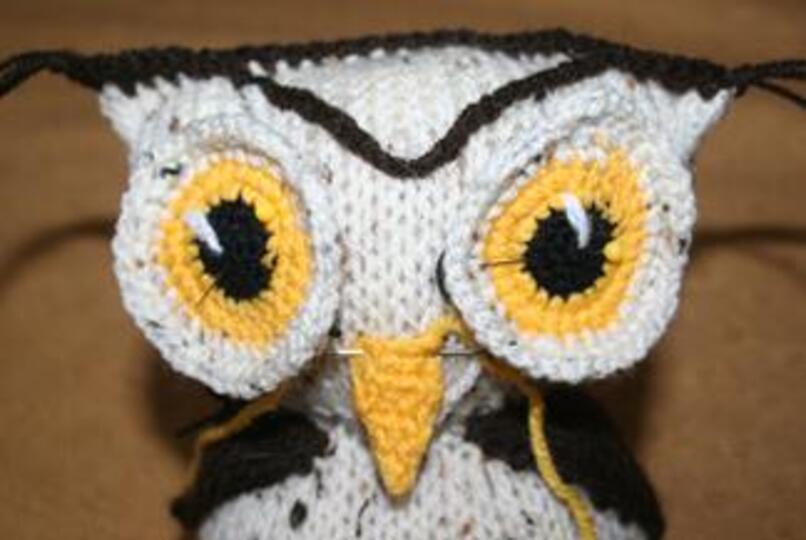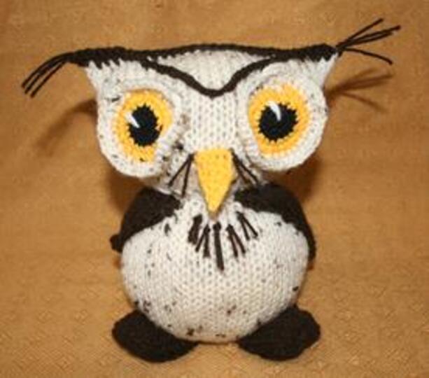 Eine fertig gestrickte Eule bekommen Sie auf Anfrage.