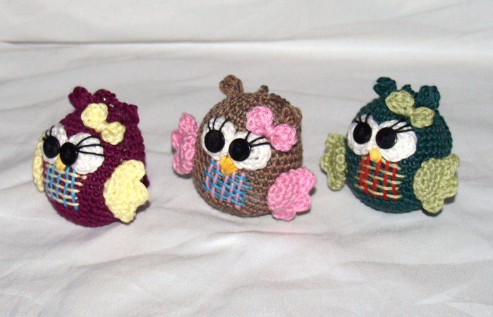 Die kleine Eule wird bis zu ca. 7cm groß. Je nach Wollstärke kann sie größer oder kleiner werden.