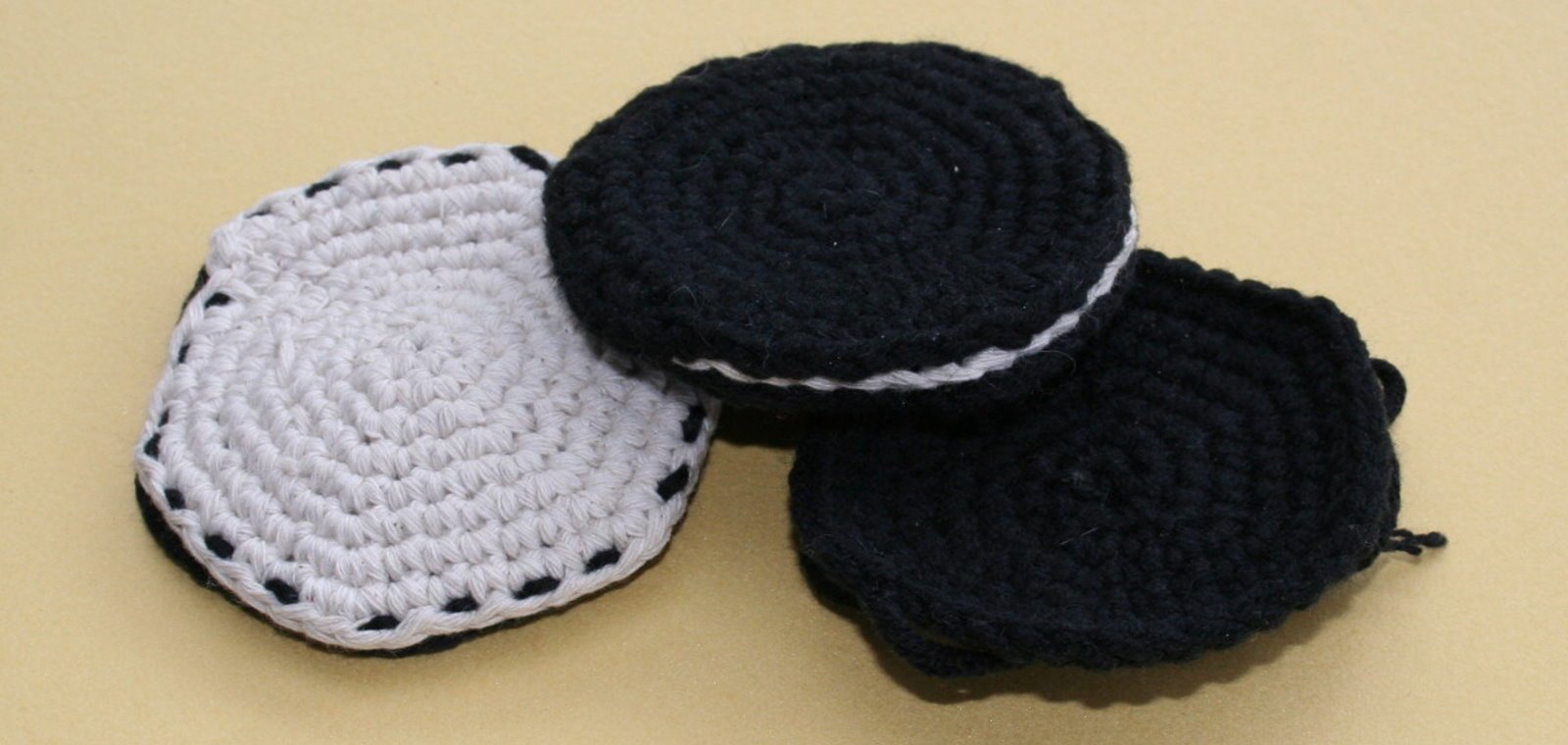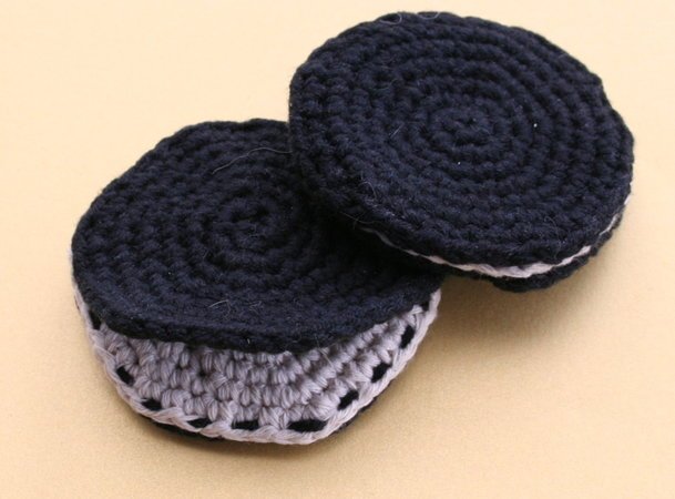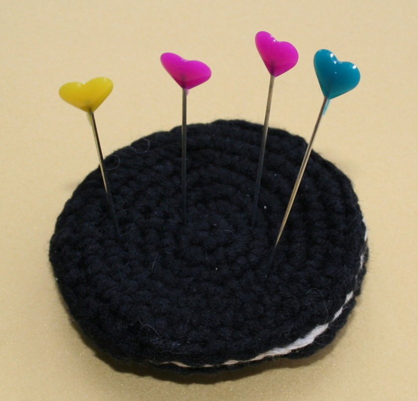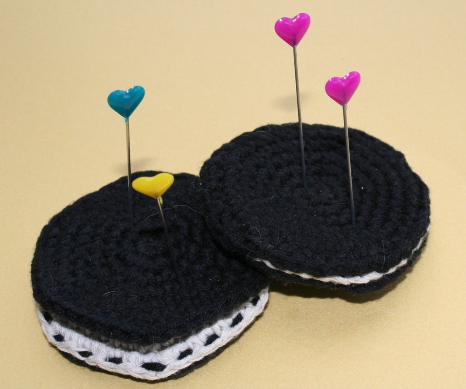 Die Oreos sind so schnell gehäkelt wie gegessen (lach), aber völlig ohne Kalorien. Man kann wie man sieht diese auch gut als Nadelkissen benutzen. Oder eine kleine Schlaufe dran und fertig ist der Schlüsselanhänger.