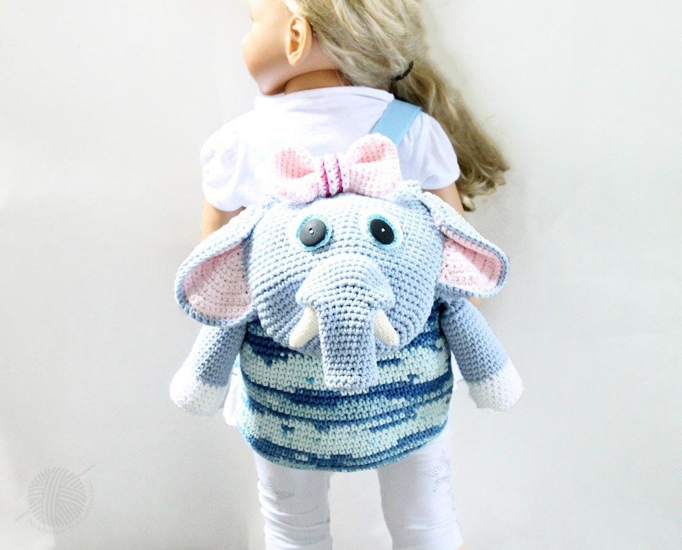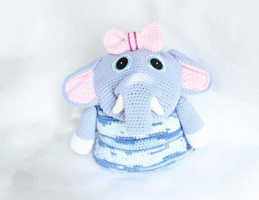 Diese PDF-Häkelanleitung besteht aus bebilderter Anleitung zum Häkeln von Kinderrucksack in der Form eines Elefanten. Für Kinder ab 3 Jahren. Mit dieser Anleitung können Sie schnell einen Rucksack für Ihr Kind (Enkelkind) häkeln.