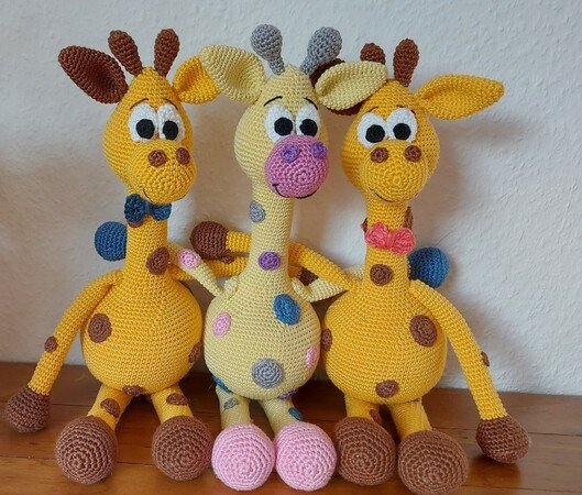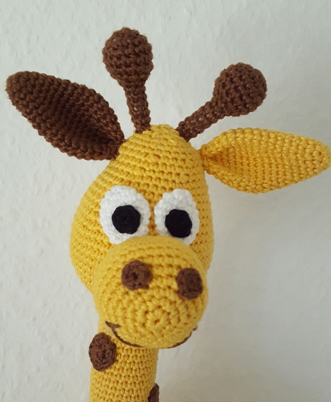 Wenn du mit doppeltem Faden und einer 5er/6er Nadel häkelst wird die Giraffe ca. 60 cm groß.