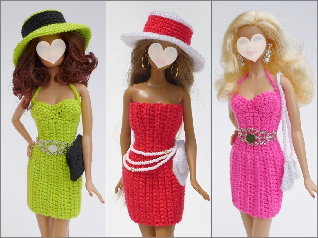 Wer gerne gleich etwas mehr Puppenmode häkeln möchte, dem sei mein *Angebot zur Kleiderserie "Schick & figurbetont" empfohlen. Dieses enthält neben den drei hier vorgestellten Sachen noch 4 weitere Modelle.
