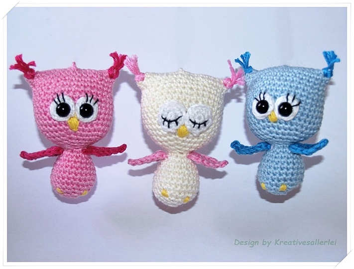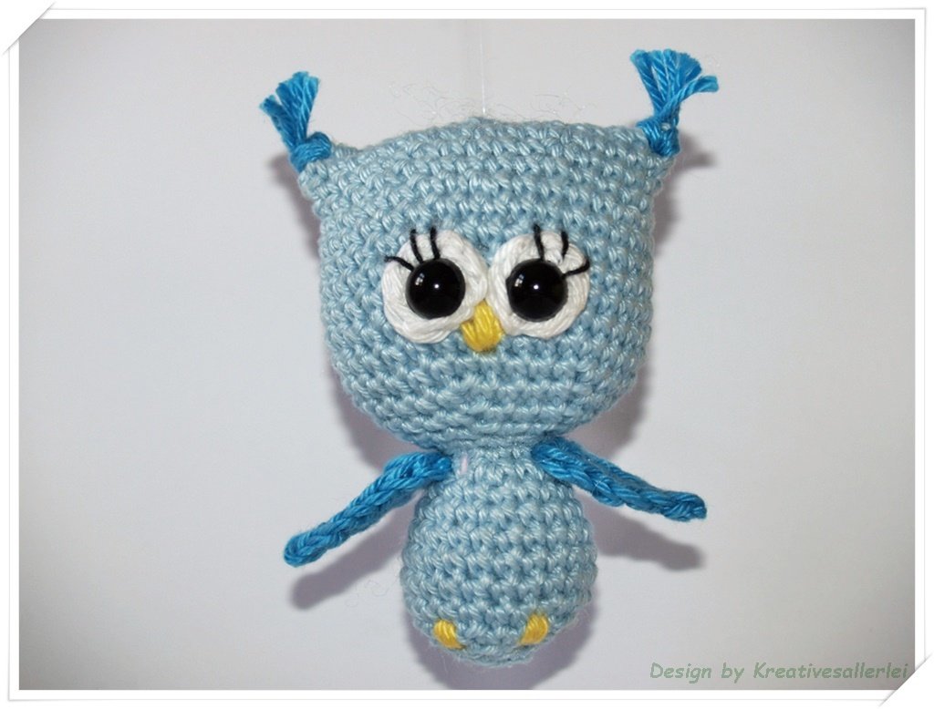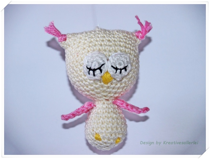 Diese Eule kannst du ganz schnell selber häkeln. Du kannst sie zum Dekoriern, als Schlüsselanhänger oder Taschenbaumler verwenden. Sicher sieht sie auch gut am Mobile für Baby aus. Mit der Eule hast du schnell ein tolles Geschenk zun Geburtstag, zur Einschulung, zu Osern und zu Weihnachten oder einfach mal um jemanden eine Freude zu machen.