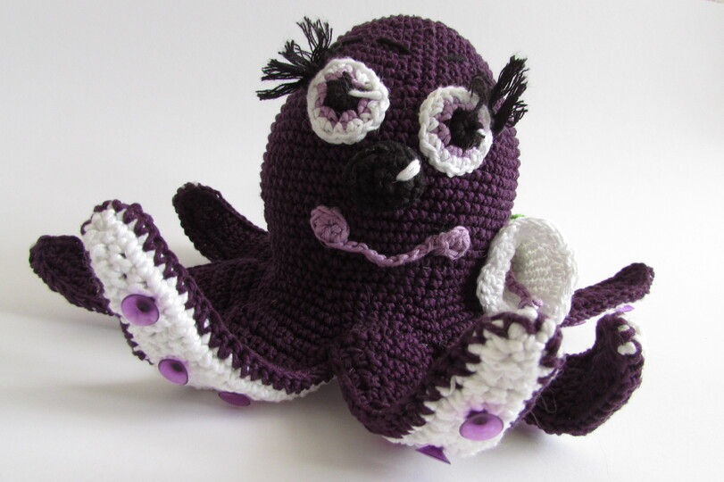 Deutsche Häkelanleitung für Ophelia Wuschel, die Krake