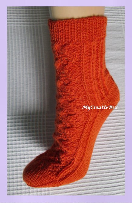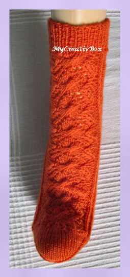 In der Anleitung werden Ferse und Spitze nicht näher erläutert; diese werden in gewohnter Arbeitsweise gestrickt.