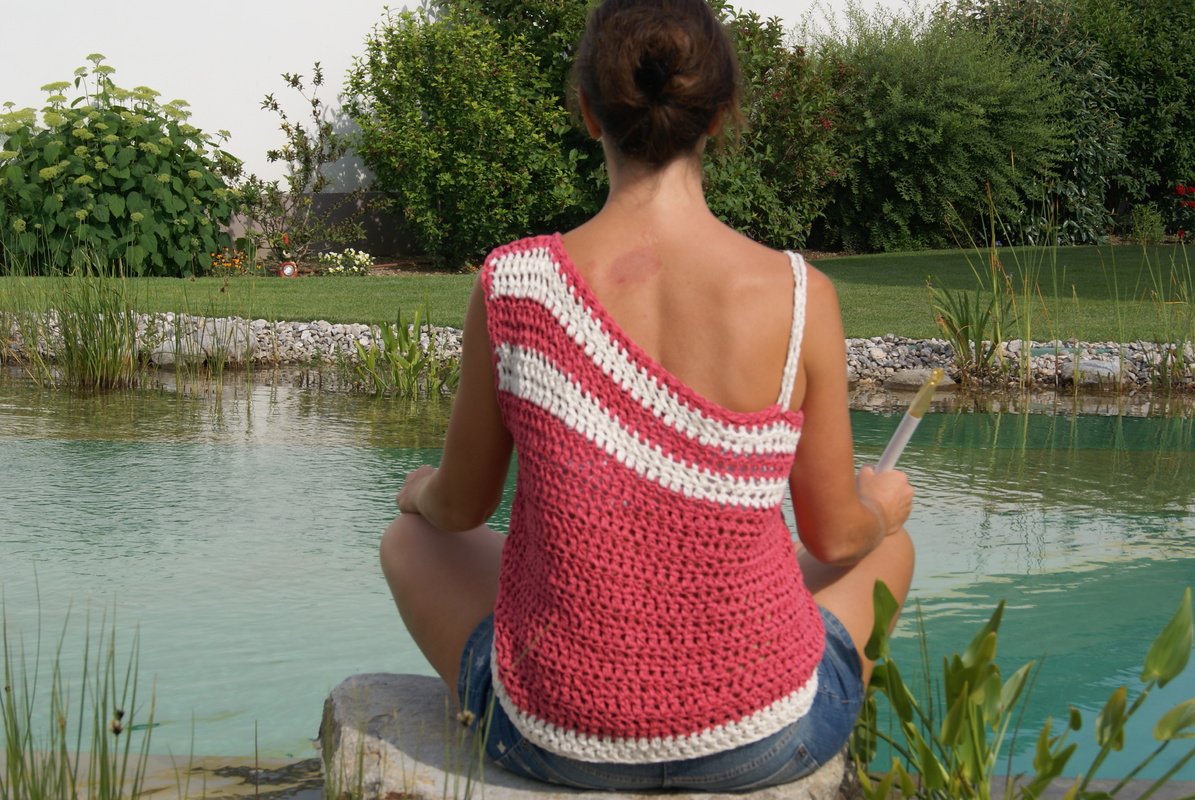 Dieses luftige Top ist ein echter Hingucker! Es ist einfach zu häkeln und macht Spaß im Urlaub oder in deiner Freizeit zu tragen. In deinen Lieblingsfarben sieht es lässig und sportlich aus und passt einfach immer für heiße Sommertage.