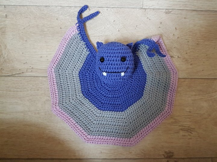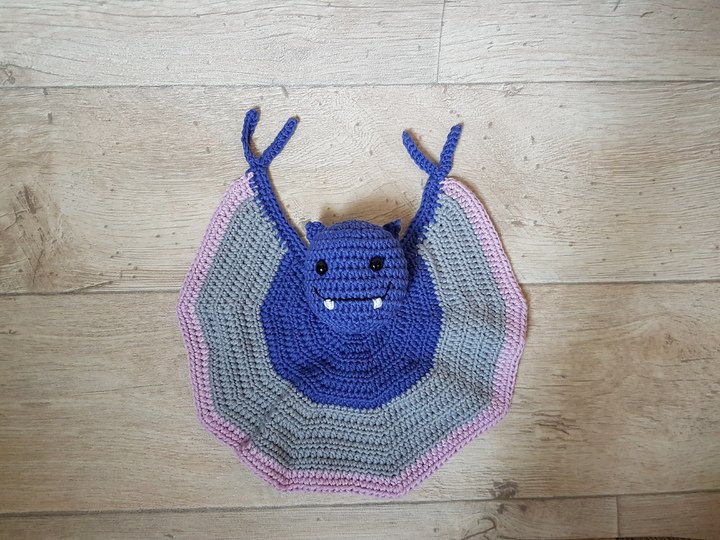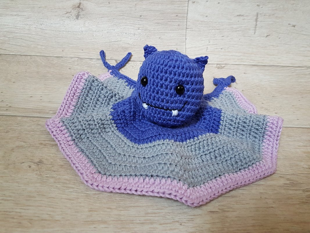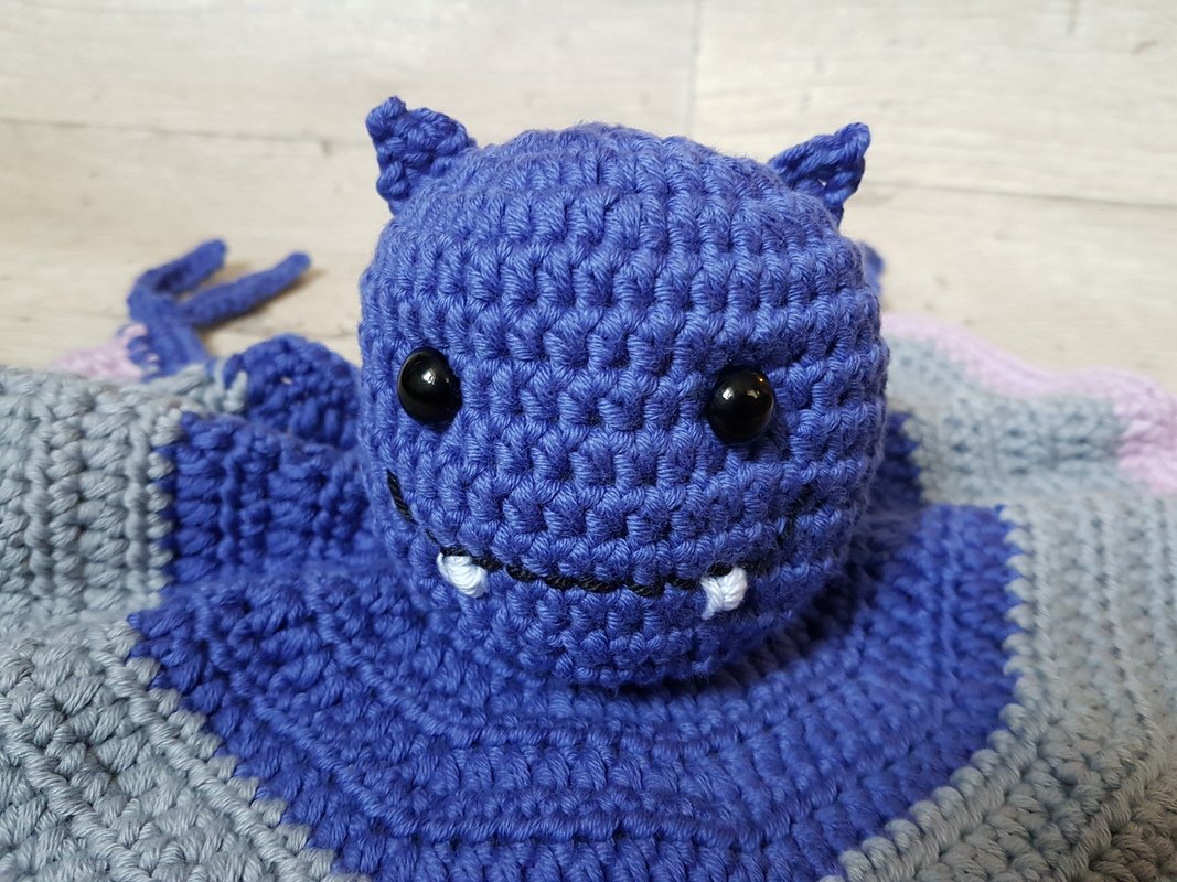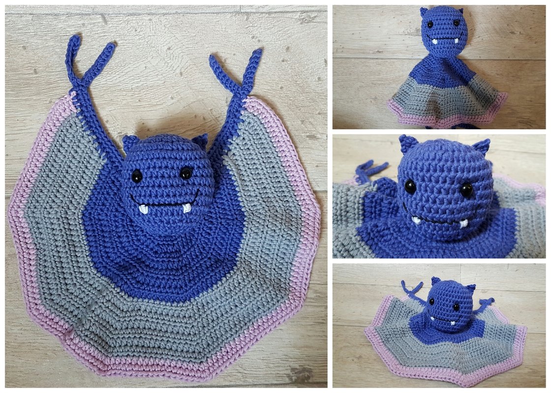 Fledermaus Fips ist eine einfache Schritt-für-Schritt Anleitung, die auf 40 Bildern detailliert erklärt, wie Ihr dieses Schmusetuch selbst häkeln könnt.