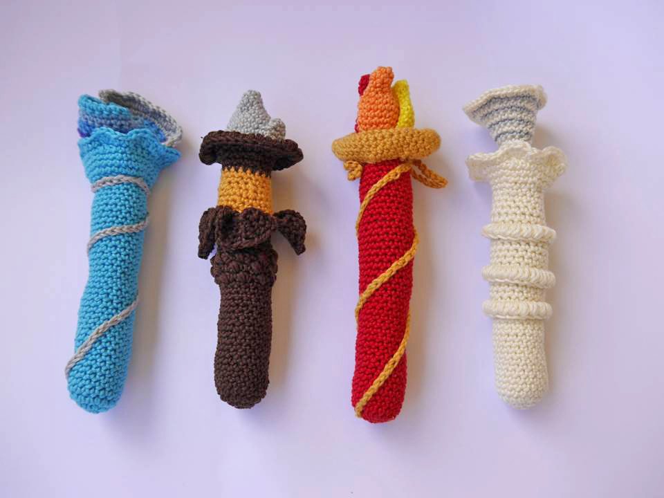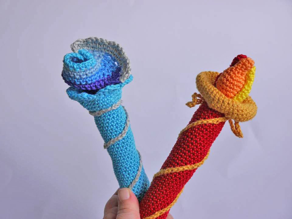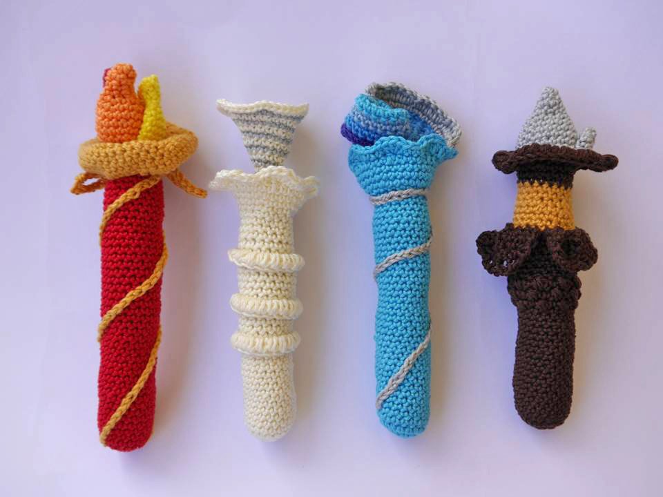 Diese Zauberstäbe der Elemente sind als Greiflinge für Babys und später als Magier-Zauberstab für Kinder etwas ganz Tolles.