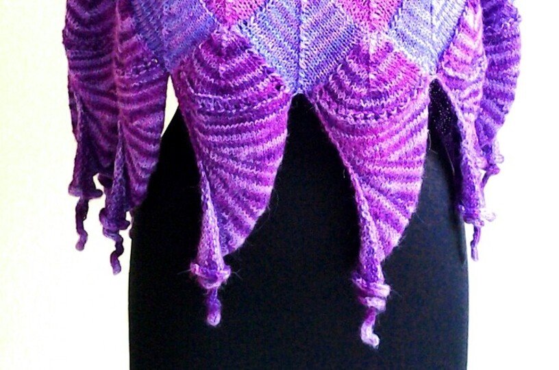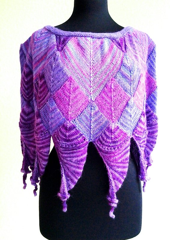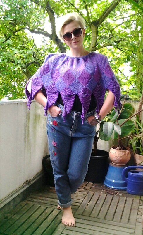 Die Meerhexe ist ein Poncho, der aus Patchworkelementen besteht. Ich habe dazu meine selbstgefärbte Alpaka verwendet, in einer kleinen feinen Auflage kannst du das zugehörige Strickset über freeminute.net beziehen.