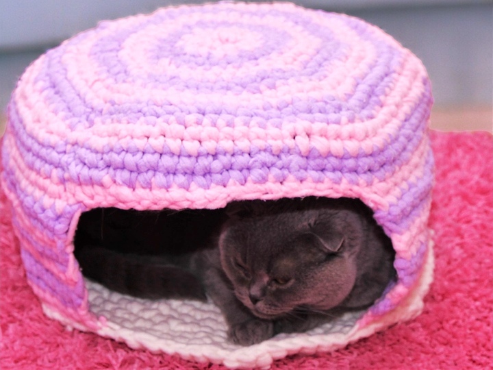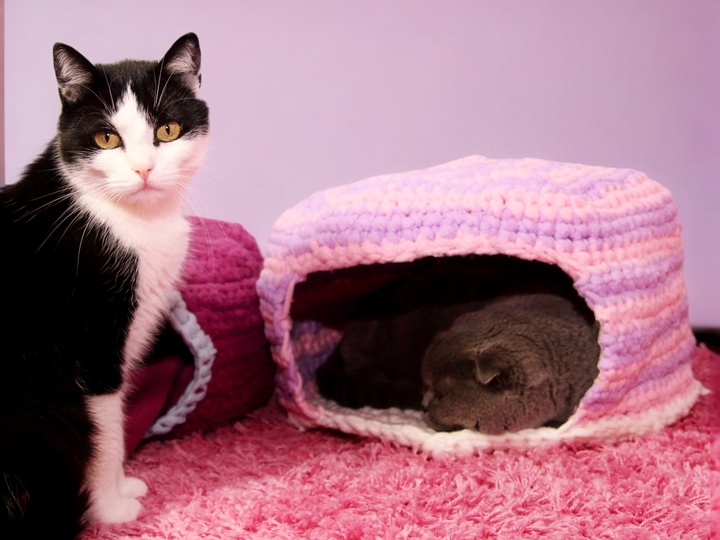 Tretet ein in die gemütliche Welt der handgehäkelten Katzen- oder Hundehöhle, gefertigt aus selbstangefertigtem Garn aus Fleecedecken! Diese einladende Höhle bietet deinem pelzigen Freund einen warmen und behaglichen Rückzugsort, ideal zum Ausruhen, Entspannen und Träumen. Jede Höhle ist sorgfältig handgefertigt und kann an jede Größe angepasst werden. Der weiche, flauschige Innenraum sorgt für ein angenehmes Liegeerlebnis, während das robuste Design Stabilität und Sicherheit gewährleistet. Stelle diese einzigartige Höhle in deinem Zuhause auf, um deinem geliebten Katzen- oder Hundekameraden einen Ort zu bieten, an dem er sich geborgen fühlt und sich entspannen kann.