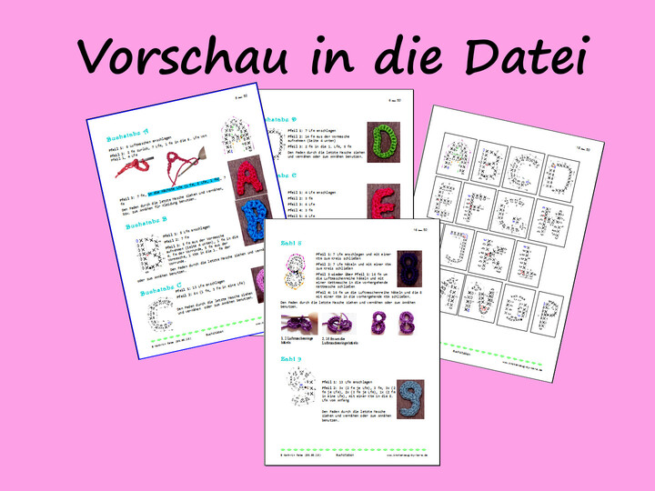 Die Buchstaben und Zahlen sind circa 3 cm hoch und bestehen meistens nur aus Luftmaschen und festen Maschen. Für bestimmte Buchstaben benötigt man das Wissen, wie man Maschen aus der Vormasche aufnimmt. Aber keine Angst, ich habe es bildlich in der Anleitung erklärt. Also so, wie beim Filethäkeln.