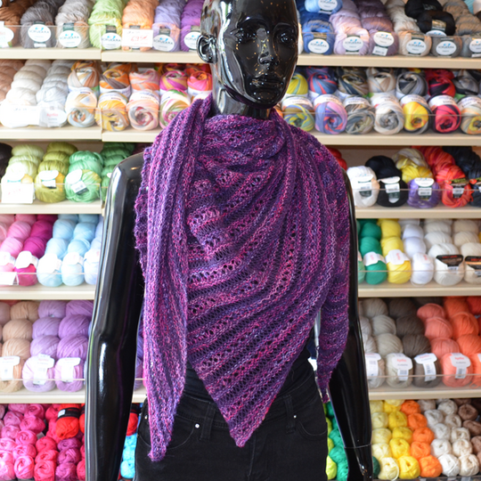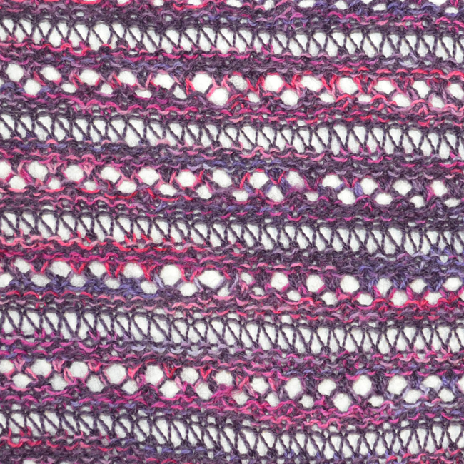 Dieses Tuch besticht durch seine Leichtigkeit im einfachen Loch-und-Fallmaschen Muster.