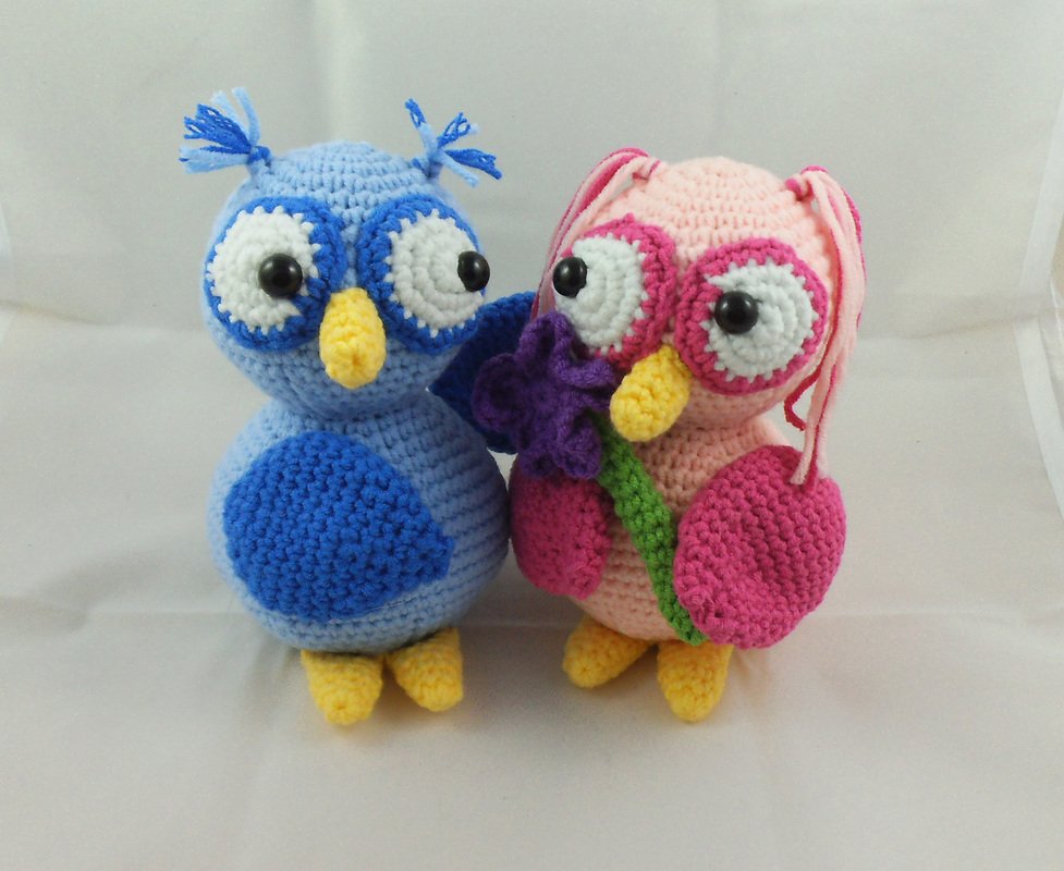 Die Größe beider Eulen beträgt ca. 15cm, und die Anleitung ist reichlich bebildert.