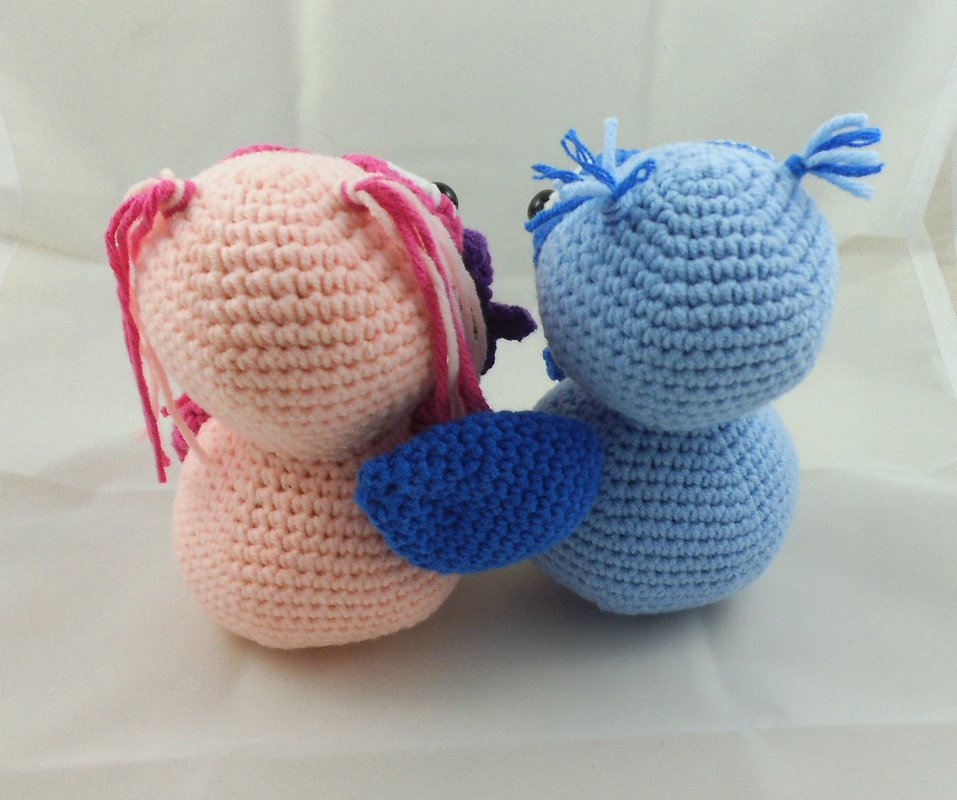 Ich habe eine Häkelnadel der Stärke 3,0 verwendet. Die Hauptfarben sind hellblau & rosa, zusätzlich brauchst du noch Reste in royal & pink, sowie weiß, violett, gelb und grün, Sicherheitsaugen in schwarz (Durchmesser 10mm), Füllwatte, eine Schere und eine Wollnadel.