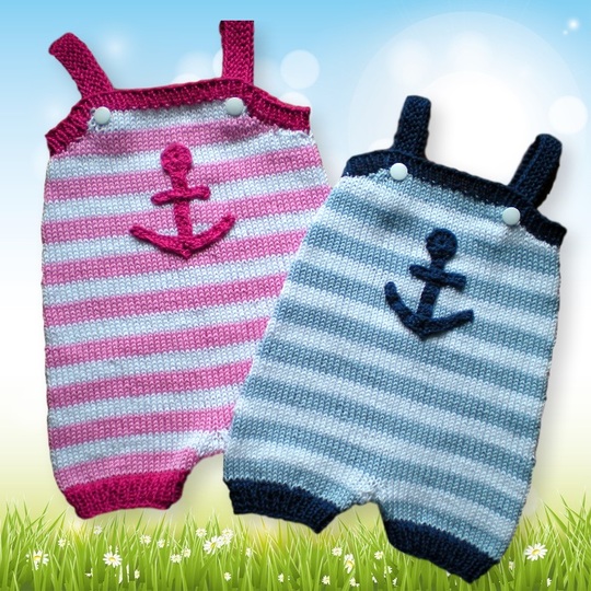 Eine süßer Babystrampler im maritimen Style. Gestrickt wird sie aus Baumwoll. Es wird in Runden gestrickt und es gibt dadurch keine störenden Nähte.
