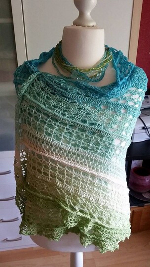 Mit dieser Anleitung können Sie ein schönes Tuch häkeln. Die Anleitung wurde von Antonia geschrieben und mir und meiner FB-Gruppe (Minoet`s Wollideen) zur Verfügung gestellt.