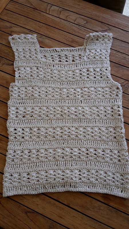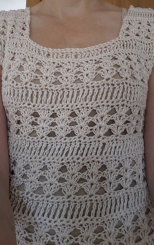 Schönes Häkeltop Gr. 36/38 aus 100% Baumwolle mit schöner Musterfolge. Mittlere Häkelkenntnisse sind vorausgesetzt. Andere Größen und Wollarten können diesem Muster leicht angepasst werden.