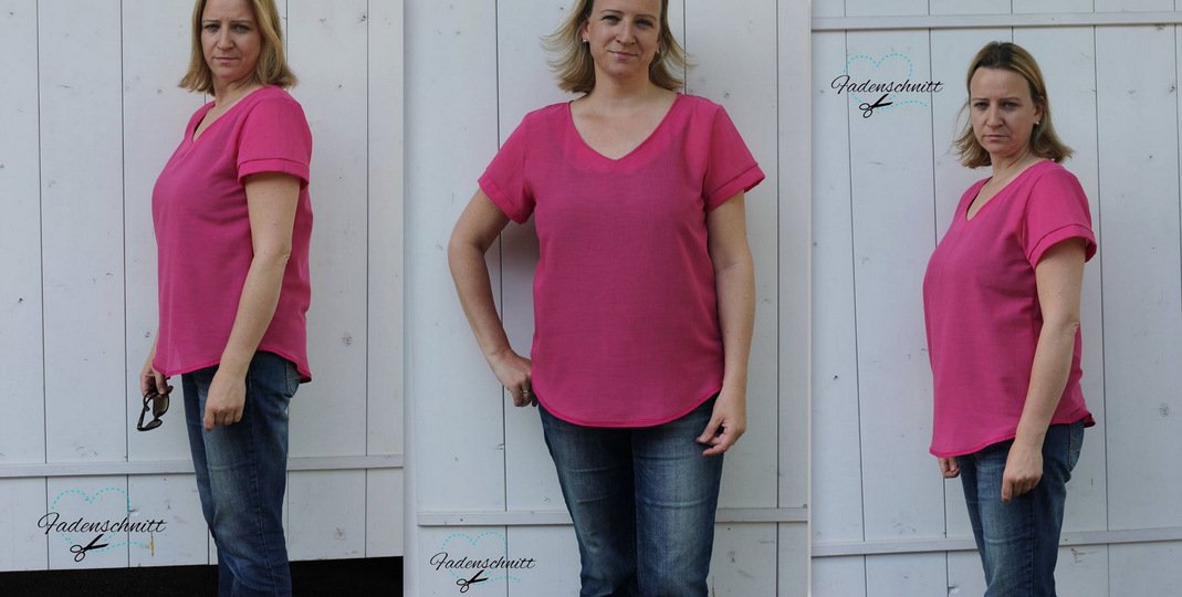 Ausgelegt ist der Schnitt für leicht fließende Baumwolle, Chiffon, Leinen. Aber du kannst auch Jersey verwenden.