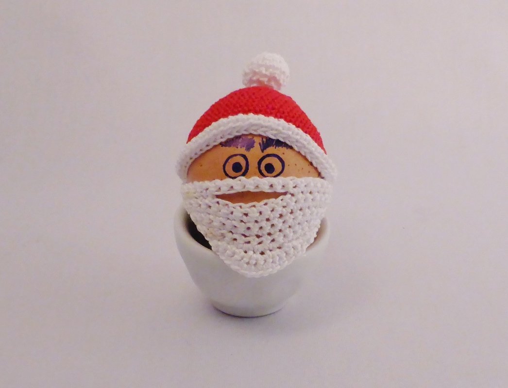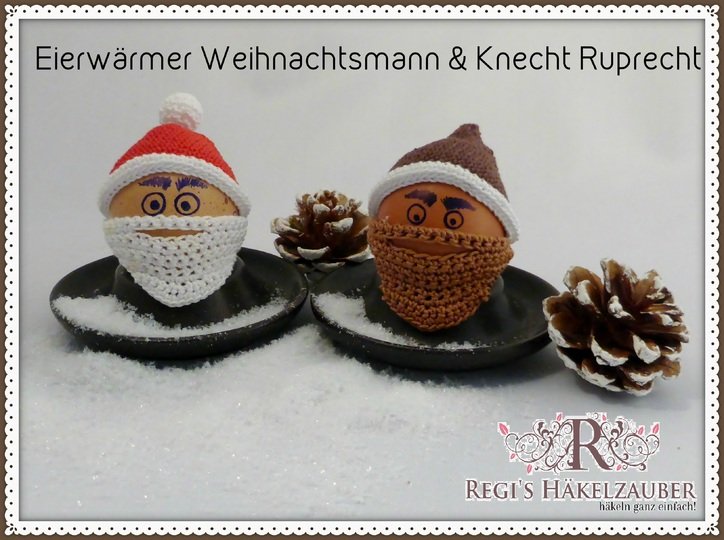 Dies sind Häkelanleitungen für den Eierwärmer Weihnachtsmann und Knecht Ruprecht. Ideal, um in den Wintertagen das 3-Minuten-Ei warm zu halten und ein Schmunzeln auf die Gesichter am Tisch zu zaubern!