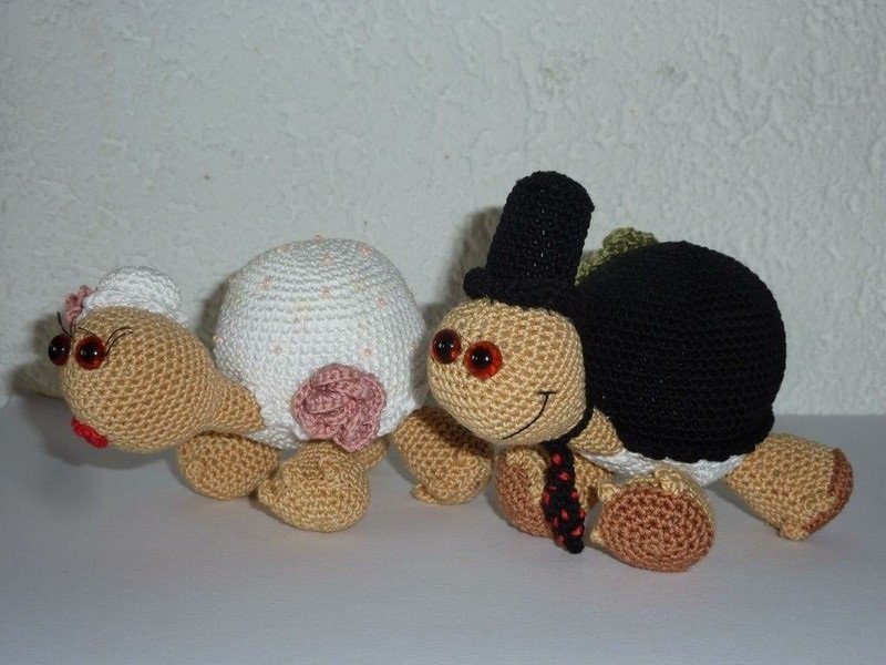 Mit dieser einfachen, detailliert ausgearbeiteten Häkelanleitung kannst Du Dein eigenes Schildkröten Hochzeitspaar zaubern.