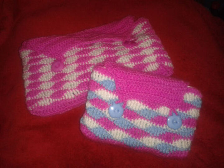 Die Maße variieren dadurch etwas, je nach Wolle und ob derjenige fester oder lockerer häkelt.