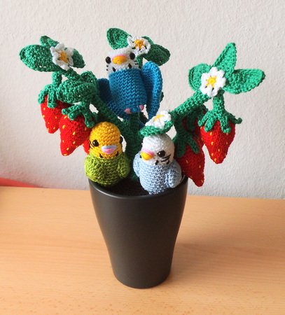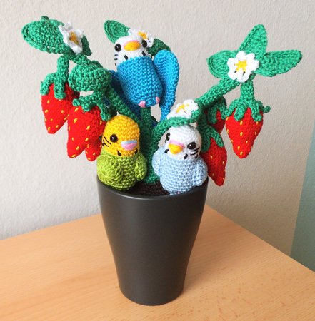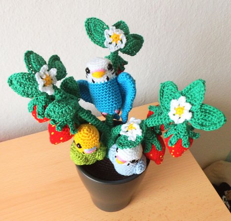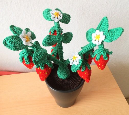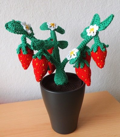 Erdbeerstrauch: https://www.crazypatterns.net/de/items/15989/erdbeerstrauch-haekelanleitung