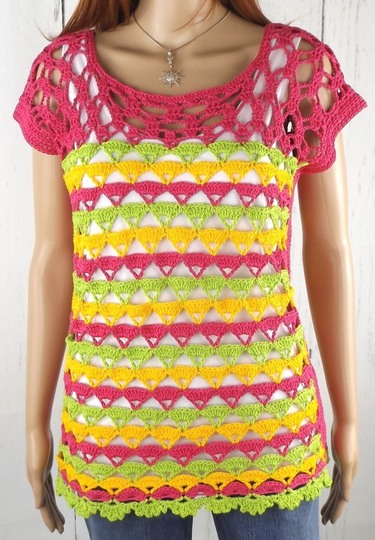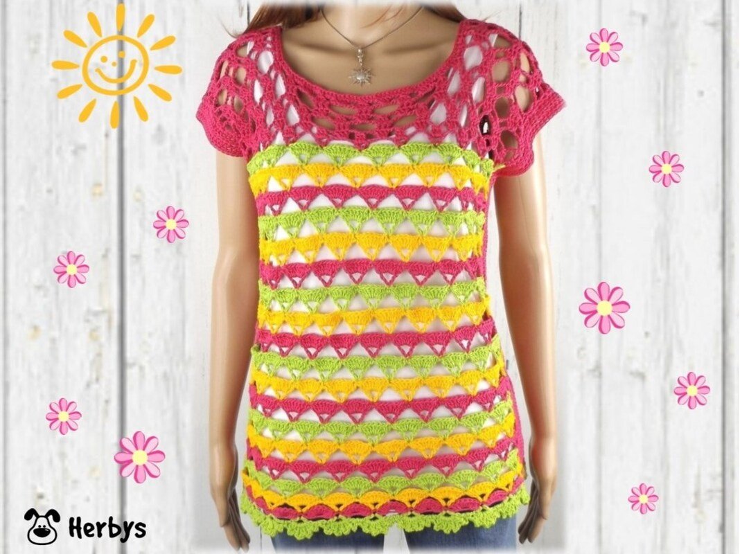 Dieses Häkeltop bringt mit seinen Guten-Laune-Farben echte Karibikstimmung in den Großstadtdschungel!