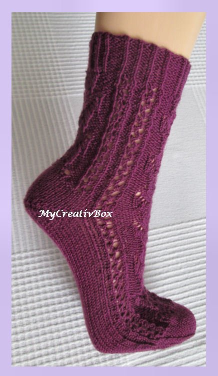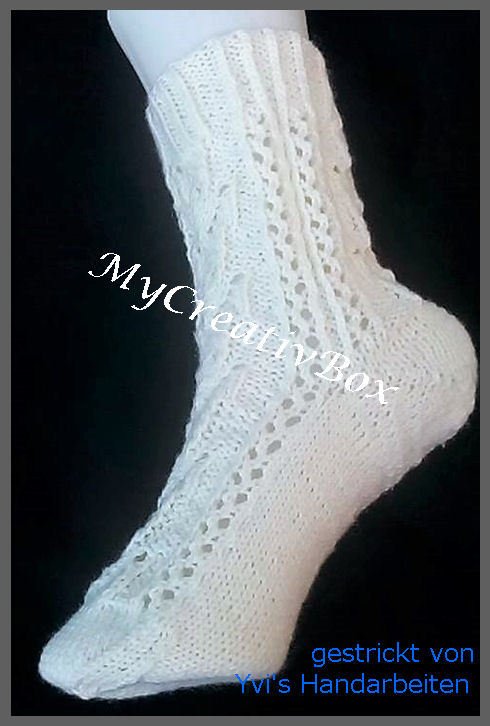 In der Anleitung werden Ferse und Spitze nicht näher erläutert; diese werden in gewohnter Arbeitsweise gestrickt.