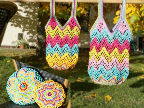 Es passen wunderbar ein Knäul Wolle, Häkelnadel, Nähnadeln und Kleinigkeiten hinein, wenn man unterwegs ist oder aber auch eine Brotdose für Kinder.