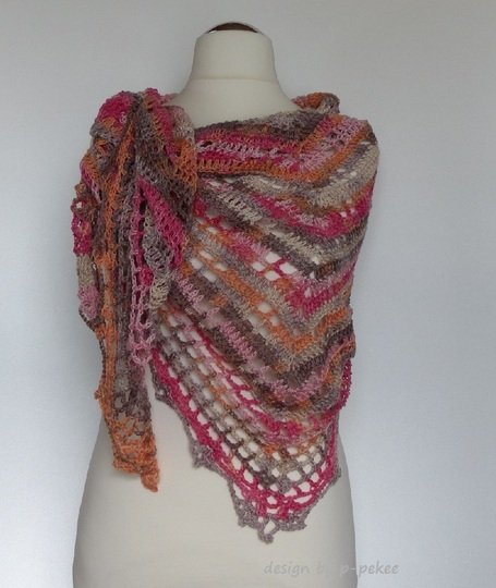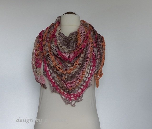 "Mija" ist ein schönes Dreiecktuch, das luftig & leicht gehäkelt wurde. Das Muster ist sehr einfach zu häkeln und prägt sich schon nach kurzer Zeit ein. Das Lochmuster & die kleine Bordüre geben dem Häkeltuch noch zusätzlich das gewisse Etwas. Mit einem Sommergarn ist es eine luftig leichte Stola für den Sommer. Natürlich kann es auch mit einem schönen Merinogarn gehäkelt werden. Dann ist es ideal für den Winter.