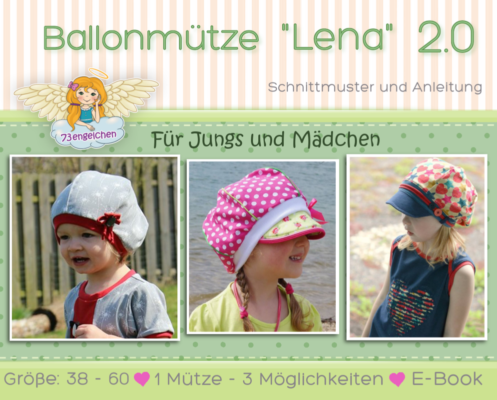 Lena ist eine fix genähte Ballonmütze, die du aus dehnbaren und nicht dehnbaren Stoffen nähen kannst, z.B. Jersey, Cord, Fleece, Popeline, Jeans usw. Ideal für deine Stoffreste.