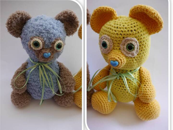 Diese Teddys sind nach gleicher Anleitung gehäkelt aber mit unterschiedlicher Wolle - somit kann man einzigartige Bären selber häkeln.