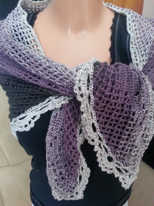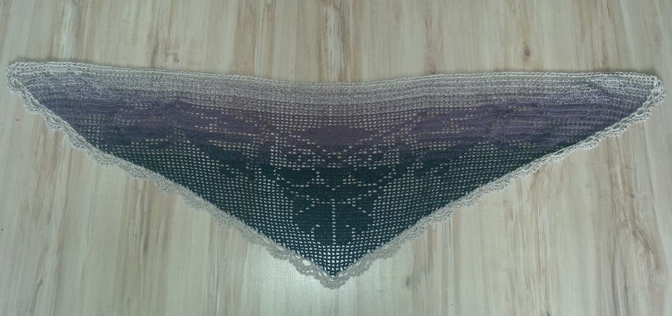 Einzigartiges Dreiecktuch mit einem Eulenmotiv in Filethäkeltechnik. Das Motiv kommt besonders gut zur Geldtung, wenn unifarbenes Garn verwendet wird, aber auch das beliebte Farbverlaufsgarn kann zum Einsatz kommen. Für das Muster wurde ein dreifädiges Farbverlaufsgarn (ca. 150g/750m)und Nadelstärke 3 verwendet. Damit wird das Tuch etwa 145x45 cm groß (ungespannt). Du kannst das Motivtuch aber auch mit jeder beliebigen Wolle häkeln.