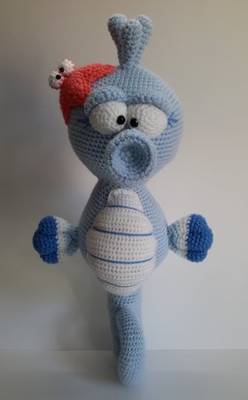 hier handelt es sich um eine PDF-Häkelanleitung für Seepferdchen "Blue" und seinem kleinen Freund dem Seestern.