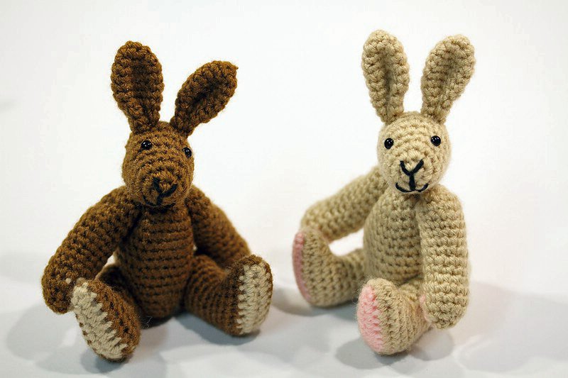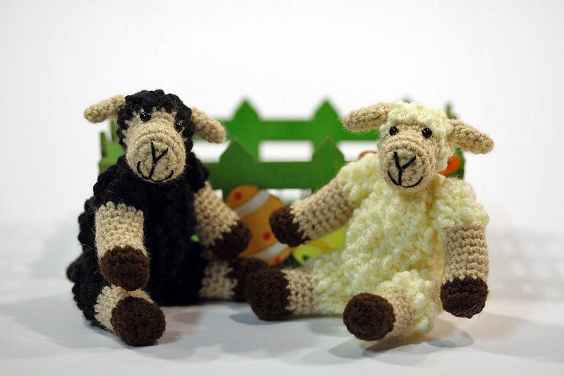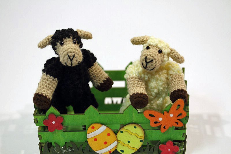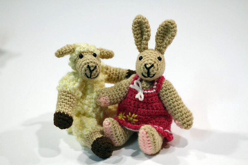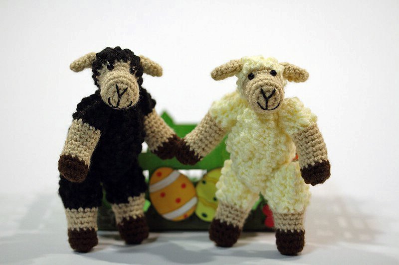 Ongie ist ca. 14 cm groß, Wollie ist ca. 13 cm groß (mit Häkelnadel Nr. 2 gehäkelt)