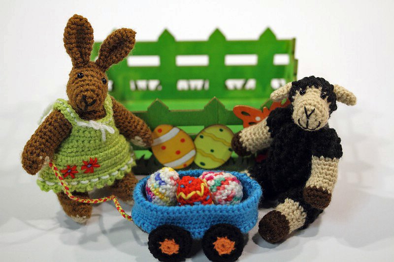 Hier kommen Sweepies Schaf "Wollie" und Oster-Hase "Ongie" im Set mit Kleidchen und Hose.