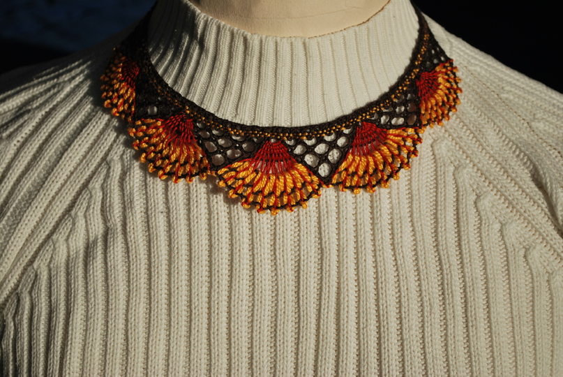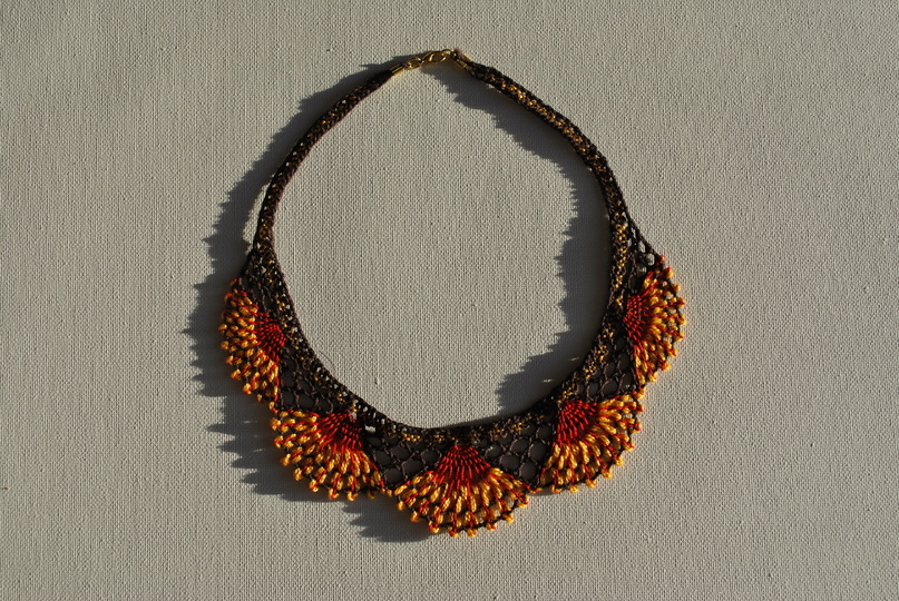 Geklöppelte Kette ca.45cm lang und bis zu 4cm breit.