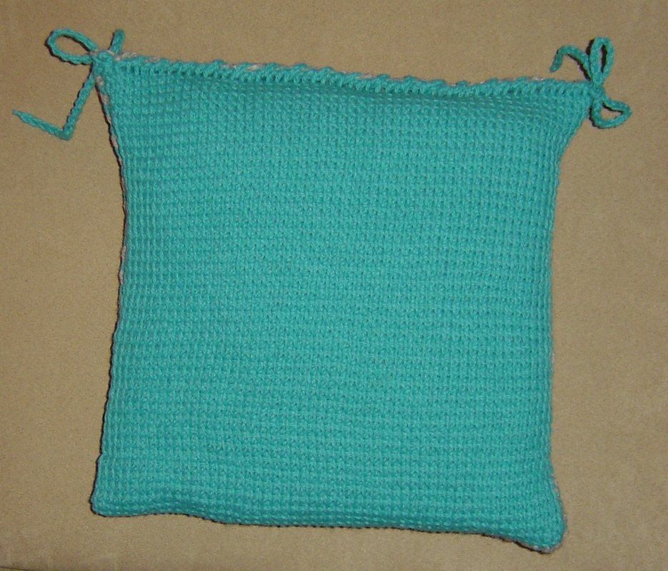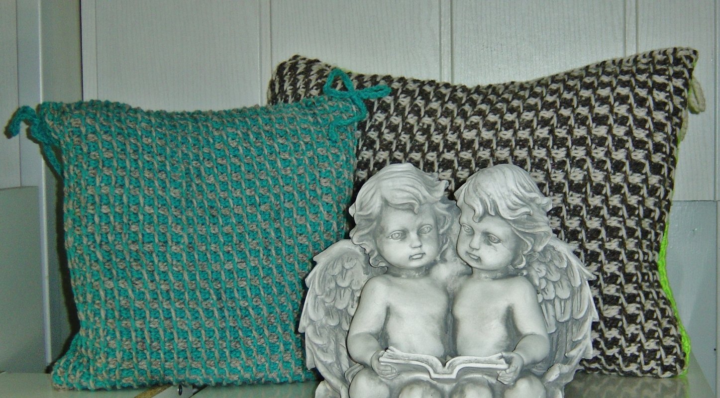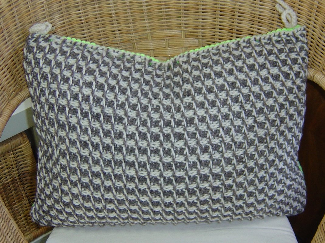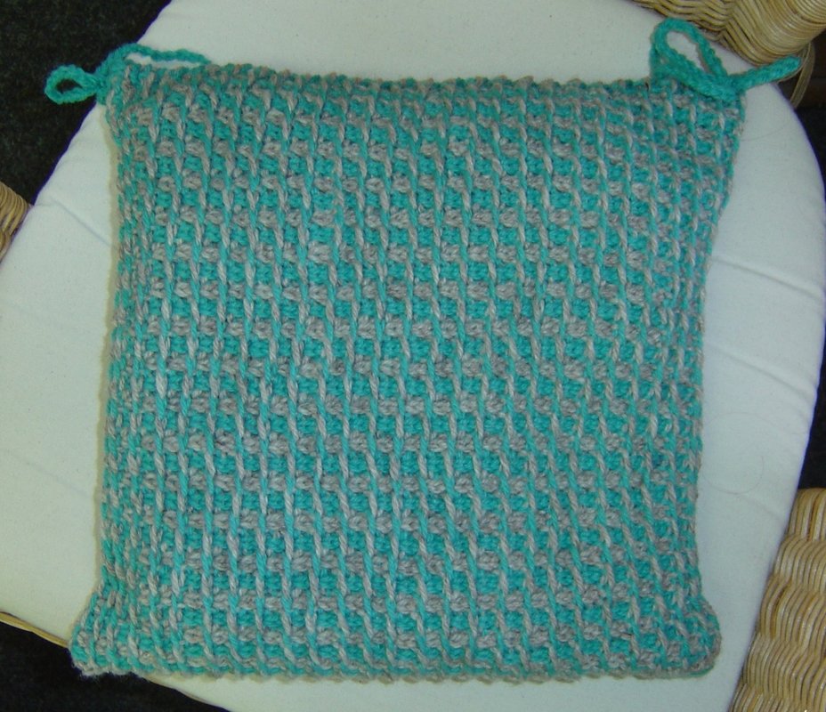 Die Garnmenge reicht auch für ein Kissen 40 cm x 40 cm. Größere Kissen bitte entsprechend mehr Garn kalkulieren.