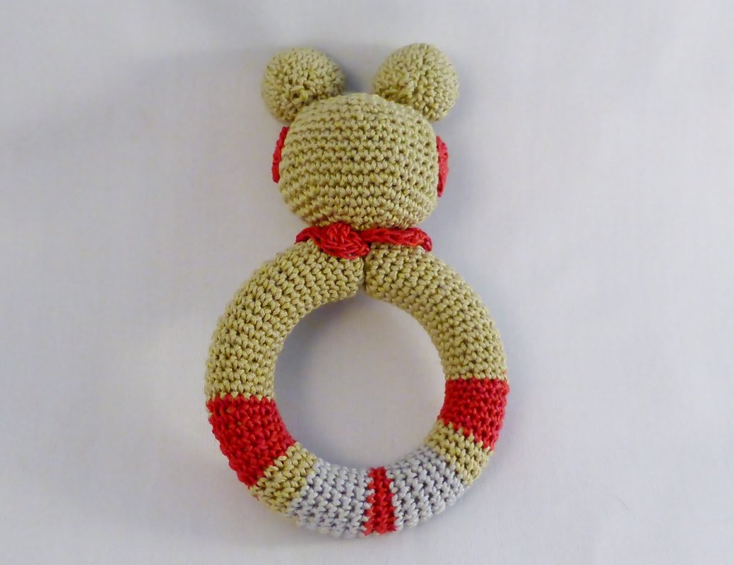 Mit dieser verständlich und detailliert beschriebenen Häkelanleitung kannst Du ganz einfach eine Baby Rassel von der Hand zaubern.